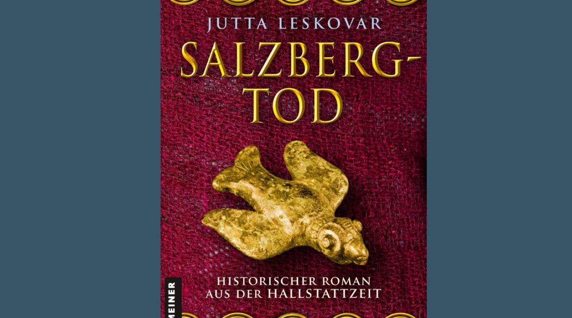Mit Band 3 der Salzbergreihe wird der gewebte Stoff auf dem Cover dramatisch rot. Wie schon bei den Vorgängerbänden „Salzbergöttin“ (blau) und „Salzbergerbin“ (grün) ist auch diese Farbe authentisch und konnte in der Hallstattzeit hergestellt werden. Gleich geblieben sind natürlich die ikonischen Spiralmuster, die auf hallstattzeitliche Doppelspiralfibeln zurückgehen. Der Vogel in der Mitte ist mit großer Wahrscheinlichkeit ein Raubvogel. Die Vorlage dafür wurde am Dürrnberg bei Hallein – dem „Kleinen Salzberg“ in meinen Romanen – in einem Frauengrab gefunden, und zwar in Form einer kleinen bronzenen Fibel.